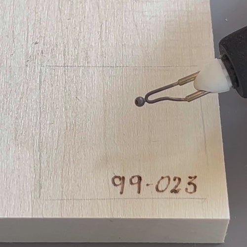 A 3/64" chrome steel ball is welded onto the end of the tip, used for burnishing, shading, or drawing larger areas. The bigger the ball, the longer it takes to heat and cool for more even heat.